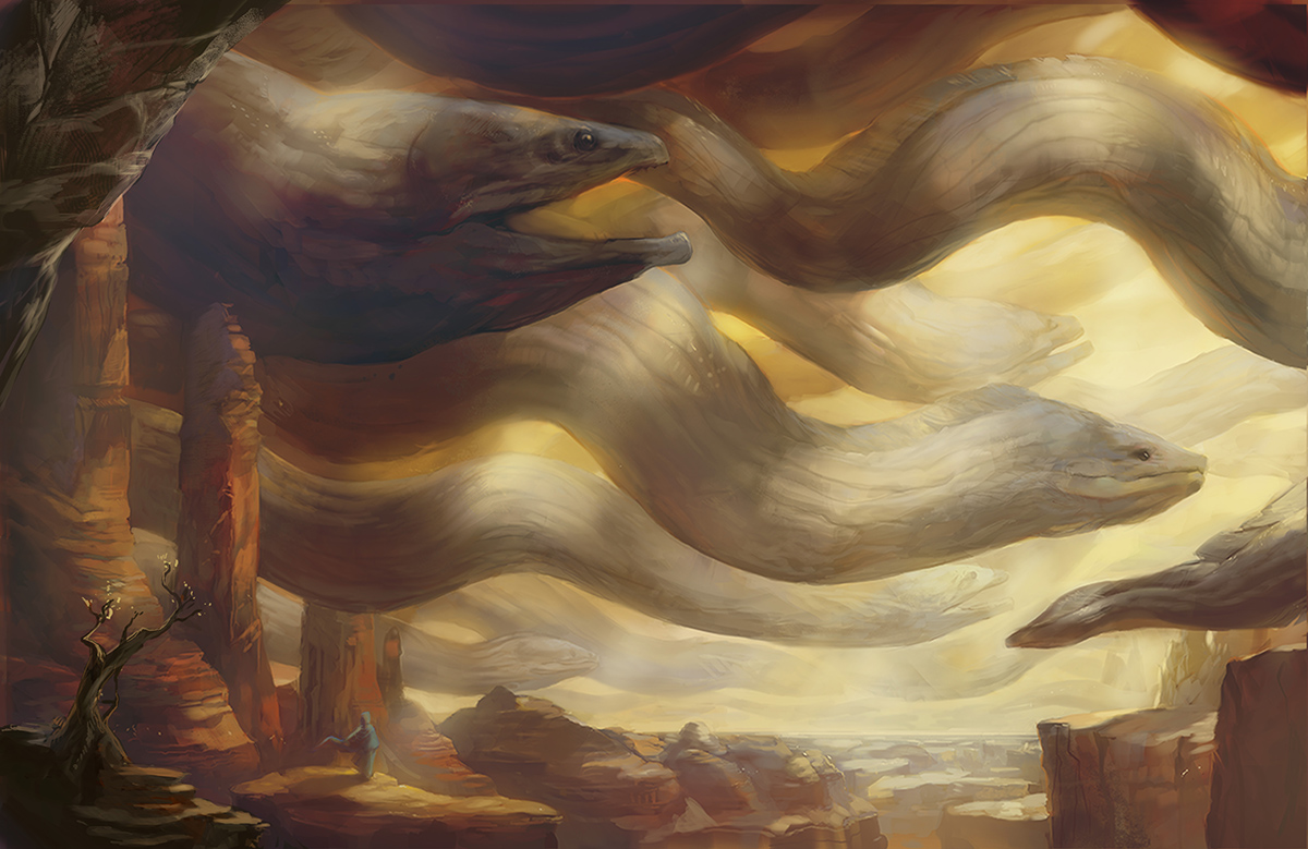 Many of your works have a joyful, utopian feel, especially the pieces that incorporate animals. While you do have works with elements of darkness and menace in them, bleakness and cynicism seem entirely absent from your work. Even the piece with the towering minotaur in a spherical labyrinth is more awe-inspiring and wondrous than dark. Again, did you feel that there was an overabundance of bleak and cynical imagery in SFF illustration and was this a conscious response?