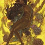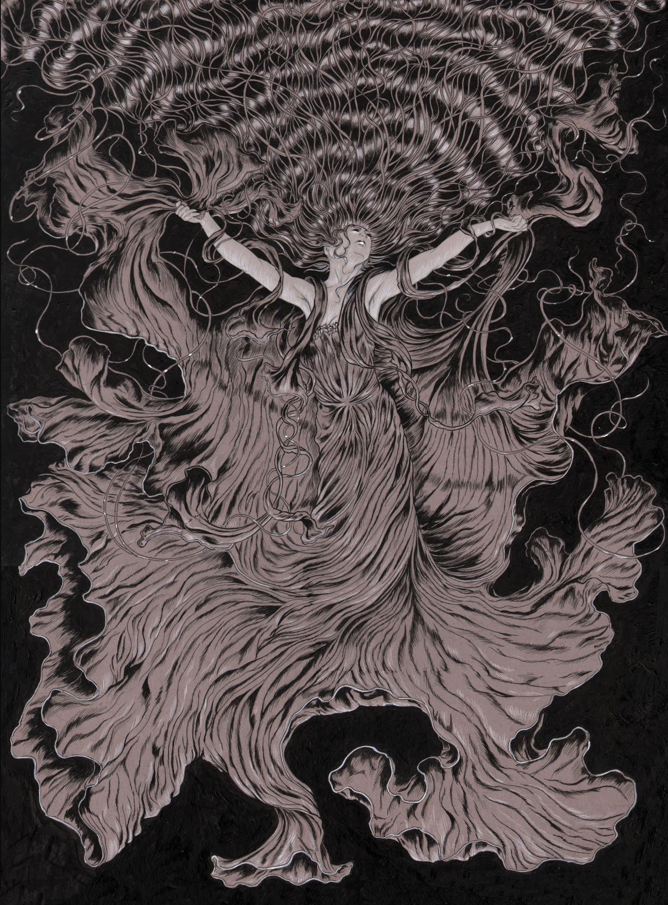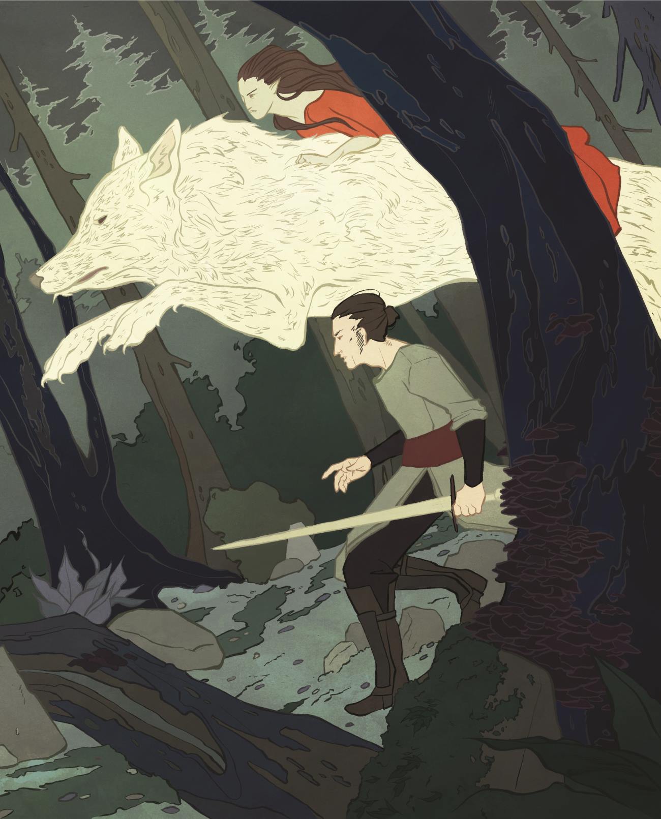 This dynamic tends to create scenes that don’t necessarily occur in the story and ultimately pushes the illustrations toward the underlying mythology and dreamscape of the narrative.